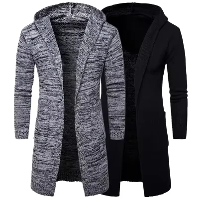 Fashion Men's Long Sleeves Knitwear Coat Autumn Winter Long Length Cardigan Hoodie Sweater Wholesale Plus Size Button